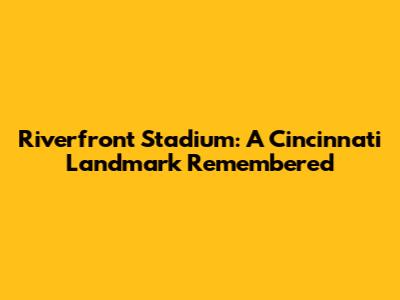 Hey guys, let's take a trip down memory lane and revisit the Riverfront Stadium in Cincinnati, Ohio! This place holds a special spot in the hearts of many, and for good reason. It's where countless memories were made, from nail-biting baseball games to rocking concerts. I mean, who here remembers the roar of the crowd when a home run was hit by Johnny Bench, or the energy of a sold-out concert by The Rolling Stones? These are the kinds of moments that made Riverfront Stadium so legendary. So, buckle up, because we're about to dive deep into the history, the highlights, and the legacy of this iconic Cincinnati venue!